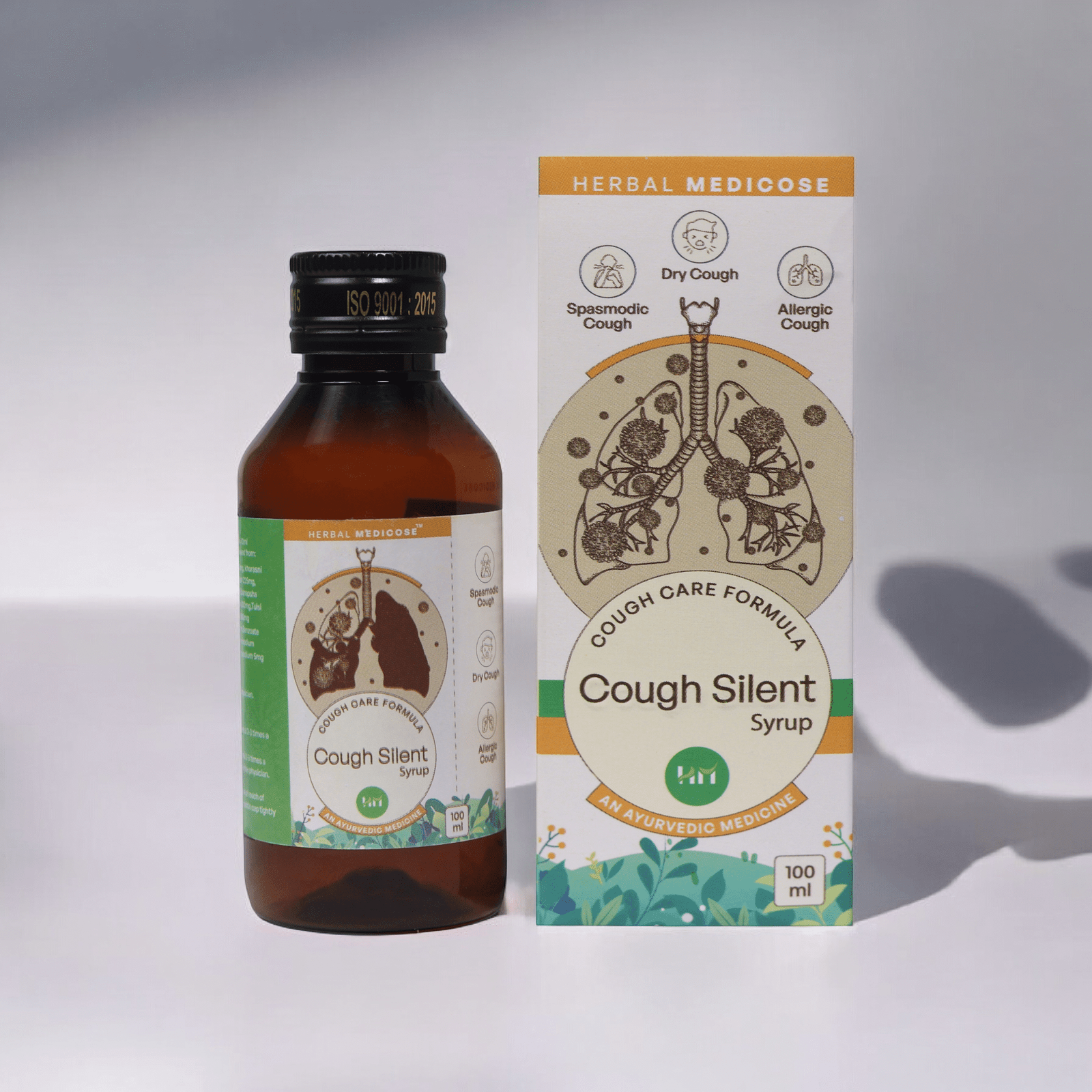 Cough Silent is a natural Ayurvedic formulation designed to provide fast and effective relief from cough, cold, and sore throat. Made with pure herbs and free from any chemicals, it offers a safe and gentle solution for respiratory comfort.